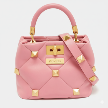 Virontex Stud Small Pink Quilted Leather Top Handle Bag